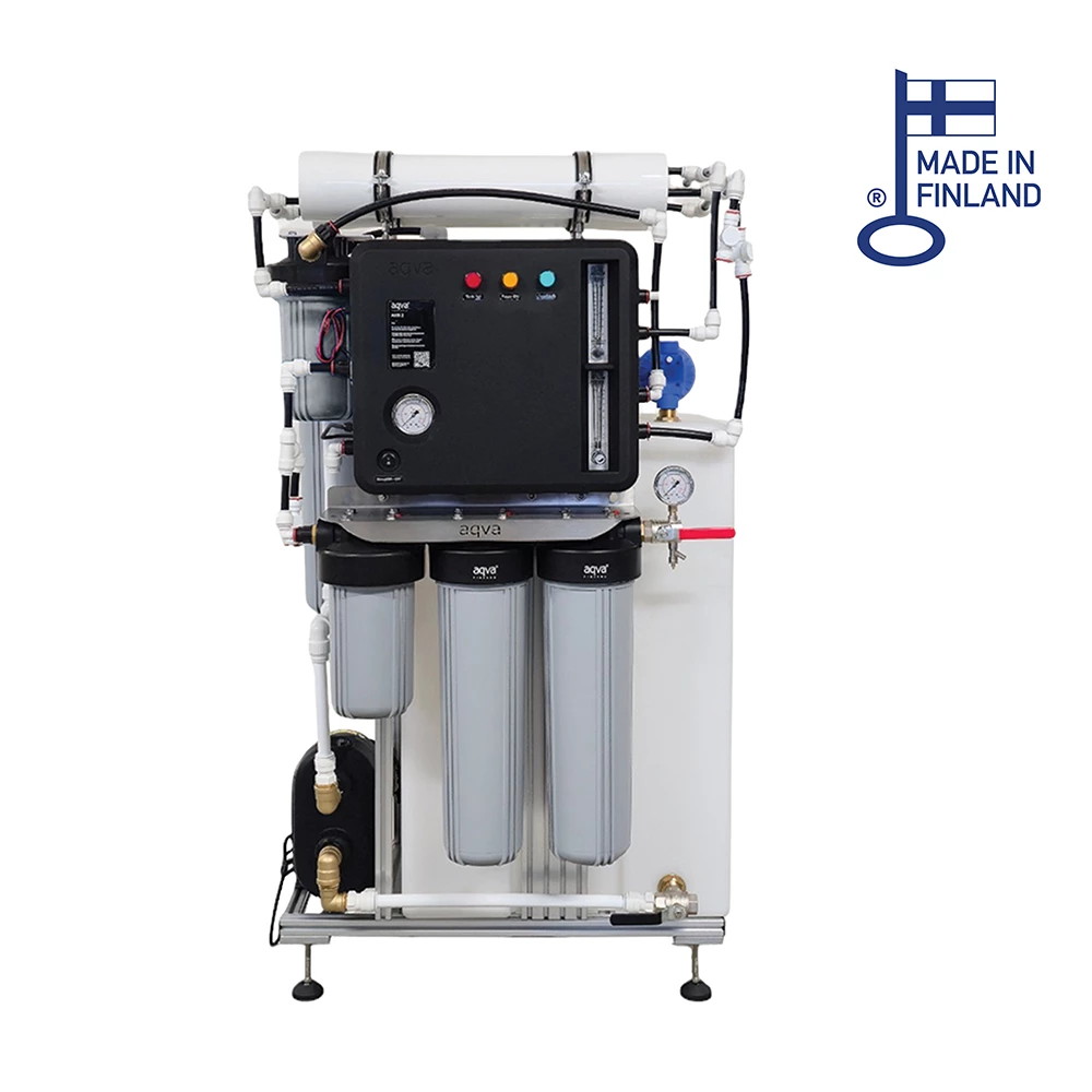 Filters seawater and saline well water to make it completely drinkable. The suitability of well water is easily verified by water analysis in AQVA's own laboratory.